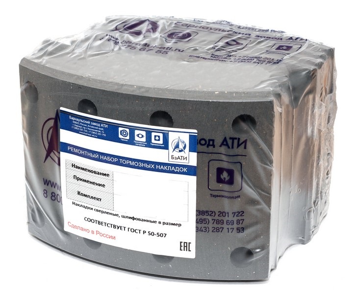 Исполнение: конвейерное (ОЕМ), накладки тормозные шлифованные в размер 8 шт, с латунной (бронзовой) стружкой, заднего моста, с отверстиями под заклёпку, с индикатором износа, в запчасть.